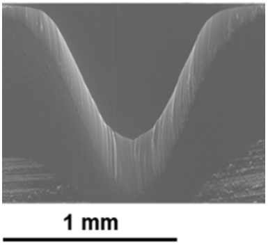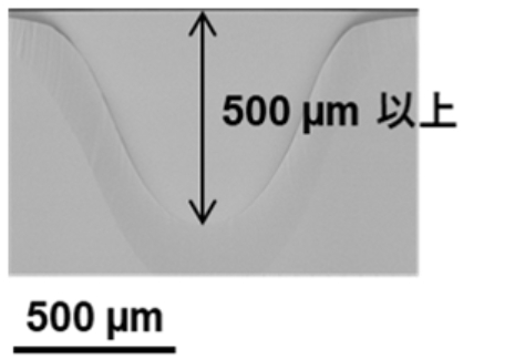*1在加速电压6kV下,将Si片从遮挡板边缘突出100µm并加工1小时的最大深度